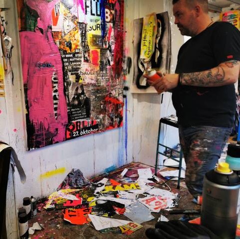 Inspirationen får han mange steder fra – lige fra musikken og filmens verden til hvad der forgår i verden omkring ham. For nogle år siden fik han nogle gamle lysskilte som han tænkte kunne bruges kunstnerisk. I dag er de kunstværker med varme farver og motiver af forskellige kendte personer som David Bowie, Charlie Chaplin. James Brown – musikken er hans tro følgesvend og spænder lige fra punk til jazz.