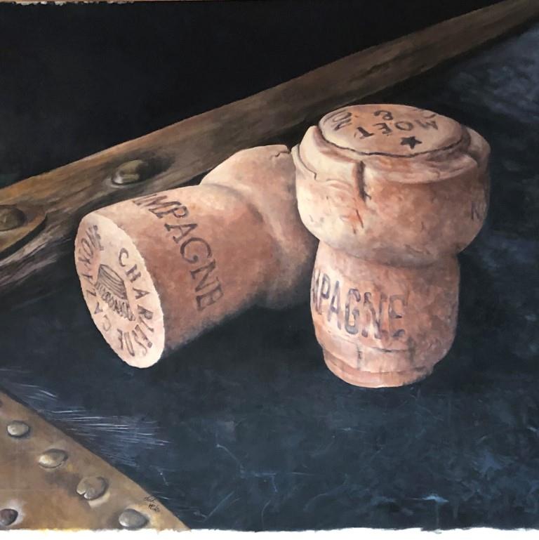 De udstillede malerier på Docken 2021 er en anden serie; korkpropper. De oversete rester efter en god flaske vin eller champagne; det er altid som følge af en stemning, det være sig glæde og fejring over en festlig lejlighed, eller det kan ses i lyset af sorg eller dæmoner, man forsøger at tæmme.