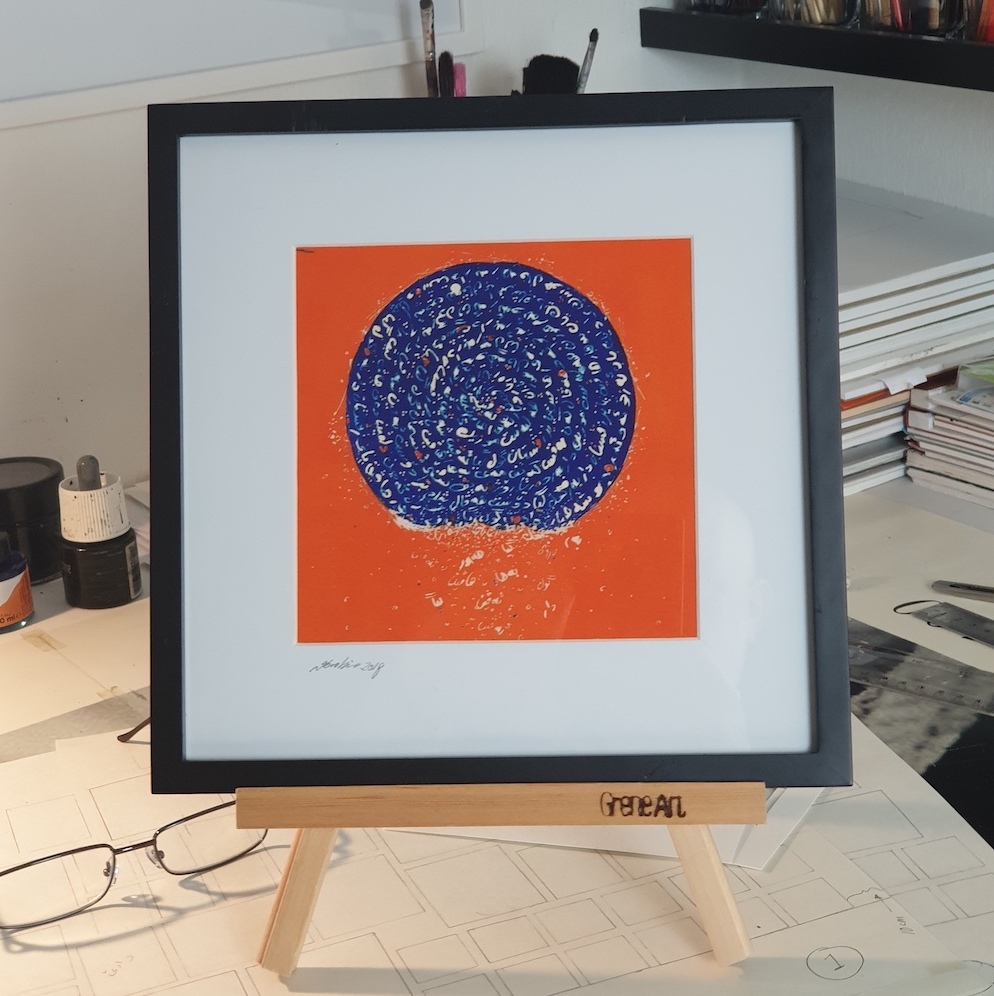 Kalligrafi er en anden del af mine værker, derfor inddrager jeg nogle gange håndlavede kurdisk skrift i mine værker. Håndskriften er med til at tilføje en vis poesi til værket. I det hele taget synes jeg, at det er inspirerende for mig at give liv til bogstaver og vise deres smukke grafiske former, som bliver kønnere og kønnere, jo mere man ser på dem. Teksterne henter jeg mest fra digte, sange, ordsprog eller er de mine egne ord.