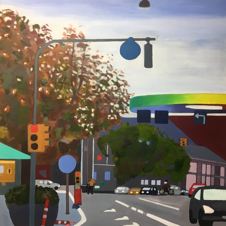 Fra lejligheden hvor hun maler, har hun den mest fantastiske udsigt til Aros. Det er faktisk også Aros’s tidligere direktør Jens Erik Sørensen, som gav hende modet til at skalere bylivets øjeblikke op i de store formater. Under en udstilling i Ridehuset stoppede han op, ved hendes detaljerede New Yorker malerier, og opfordrede hende til at gå op i format, hvilken hun tog til sig.