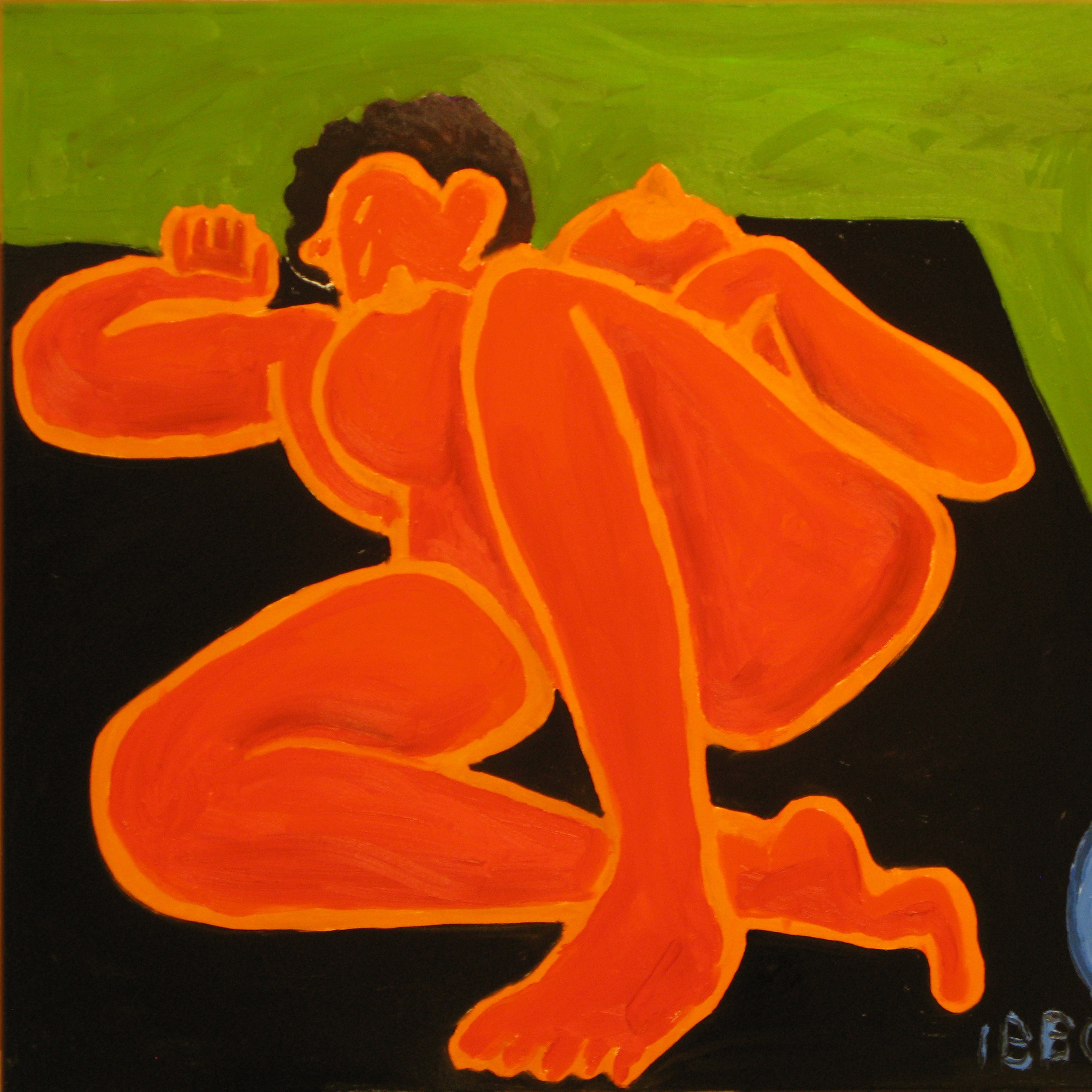 -I 1979 kastede jeg mig over et rastløst naturalistisk natur og – menneskemaleri uden nogen speciel stil. Det det førte mig igen ind i et ekspressivt figurmaleri med inspiration fra flamsk ekspressionisme (De Smet og Permeke) og danske fabulanter som f.eks. Heerup. Det vil sige: farvede konturer rundt om formerne og store ensartede flader. I 1986 debuterede jeg på ny på Charlottenborg, på K.E.91, og med en hel væg med selvportrætter i Kulturministeriets Udstillingsbygning i Overgaden i 93. Det var sammen med Flemming Born og Steffen Sølberg. Den farvede kontur forsvandt gradvist fra midt i 90erne, for at genopstå som en ofte tynd stregfigur, der er stramt komponeret ind i billedfladerne, som nu er blevet meget stoflig. Ligesom de billeder jeg forsøgte at male i begyndelsen af 60erne, forklarer Jeff Ibbo.