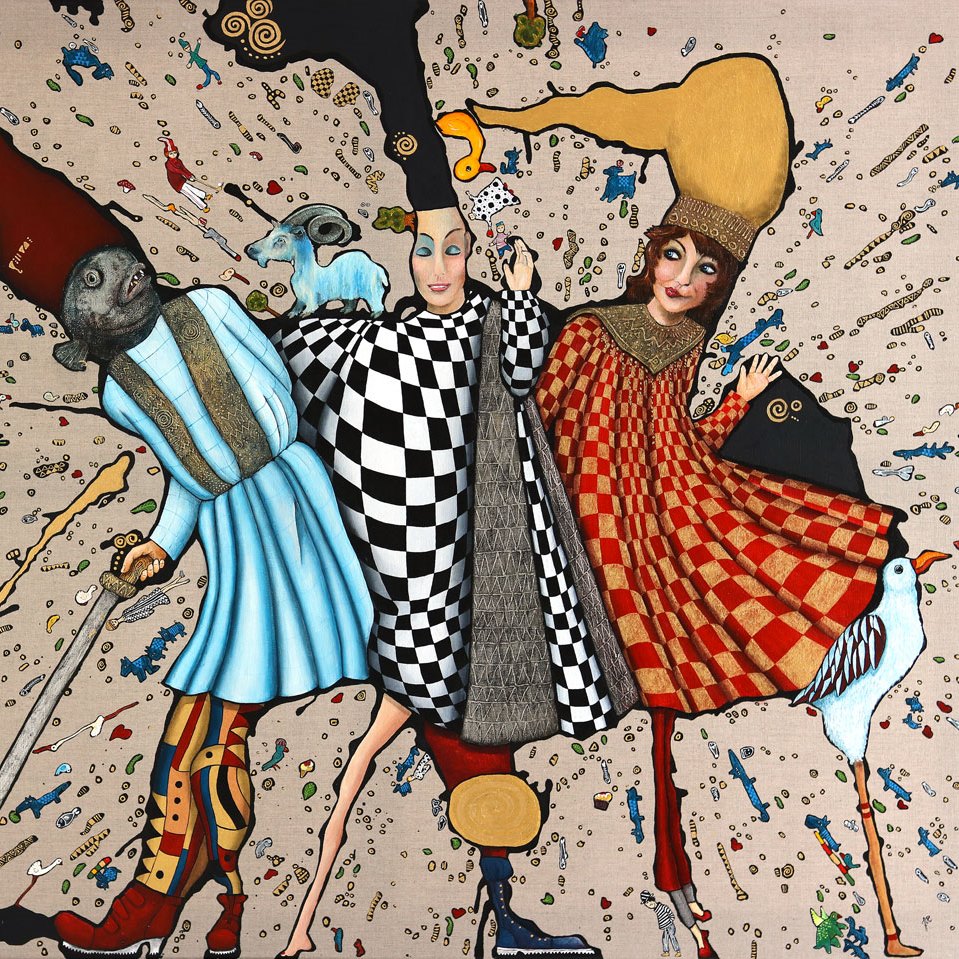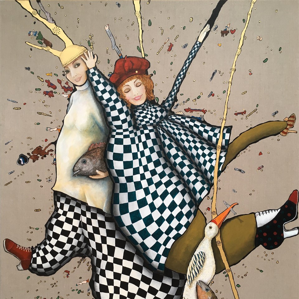 “Gåder er der også i Jette Reinerts malerier. Her behøver vi heldigvis ingen forklaring. I stedet kan vi nyde det frodige, fantasifulde spil, vi ser i billederne. De spontane fortætninger og fortyndinger, alle fabelvæsenerne, de kosmiske dansere, stjernefugle og himmeljockeyer, som myldrer frem i de eventyrlige malerier. Her er kaos og orden ikke diametrale modsætninger, men hinandens frugtbare forudsætning”.