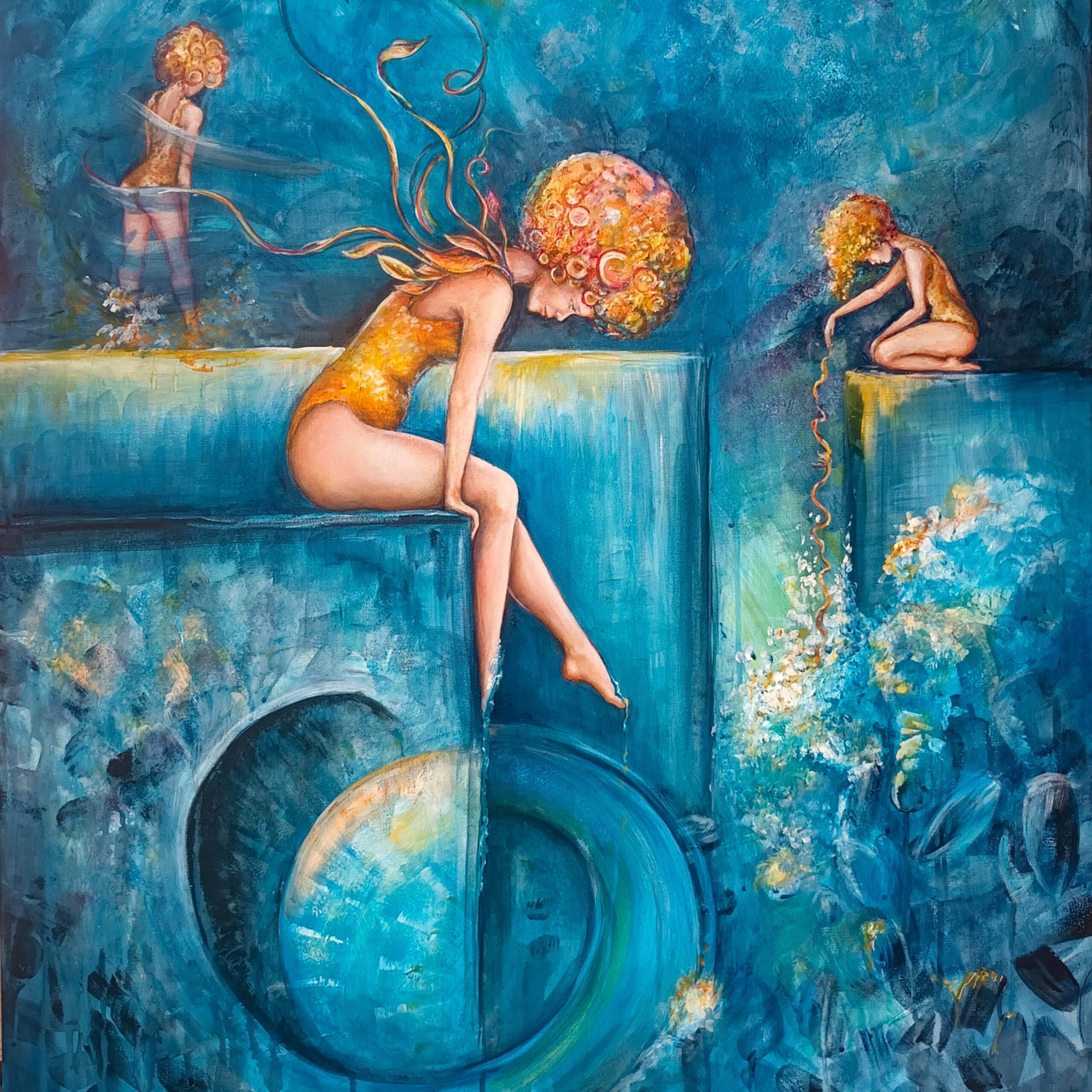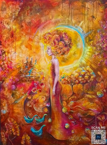 Jeg arbejder hovedsageligt med Akryl, da mit temperament passer bedst til det hurtig tørrende, hvor der kan arbejdes ind i billedet og i historien uden at vente på tørringstiden
