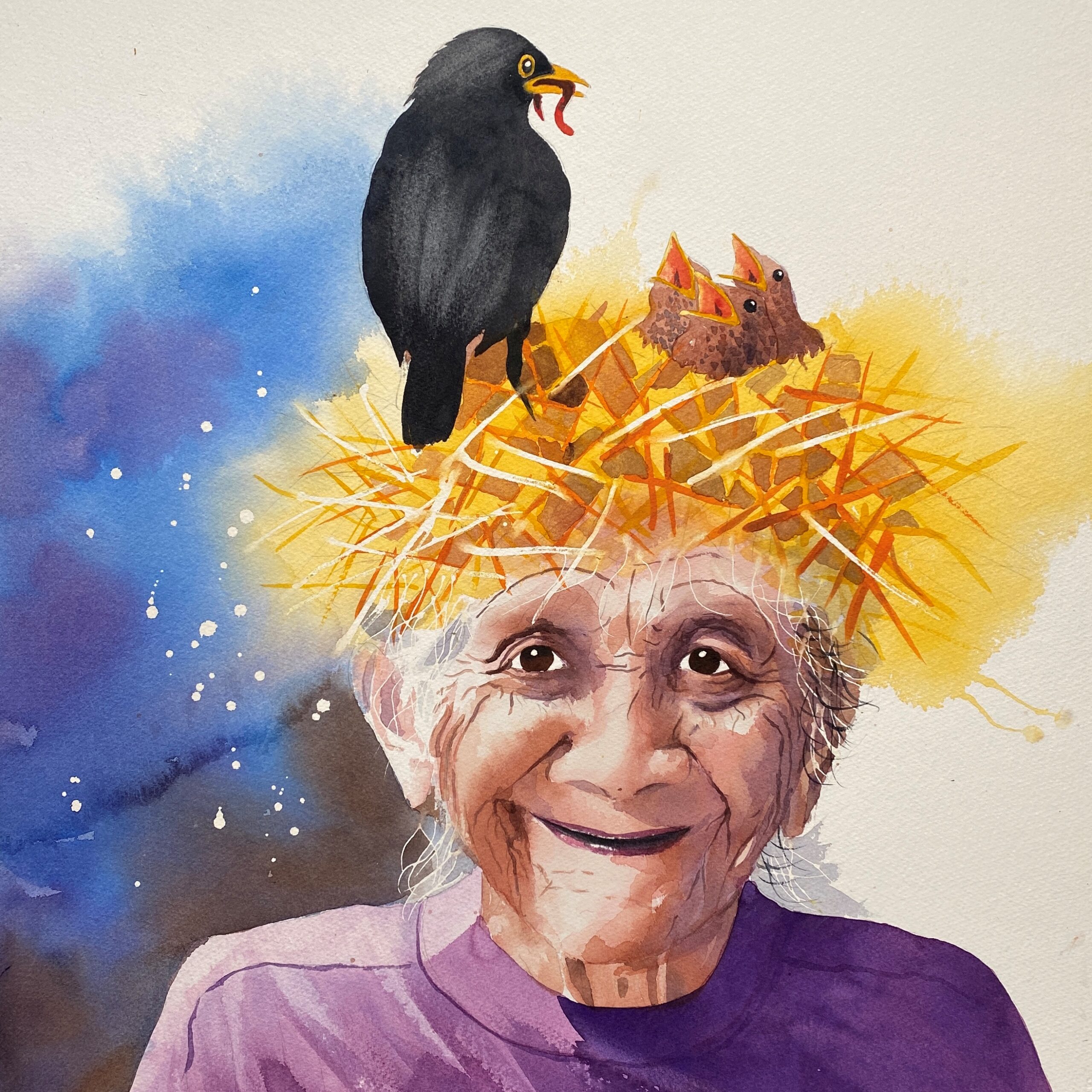 At male akvarel er både udfordrende og spændende, da man ikke kan kontrollere flydende farver. Jeg kalder processen ”en kontrolleret katastrofe”.