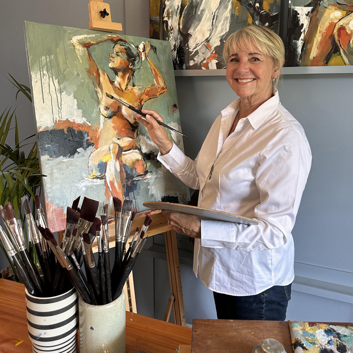 Hendes signatur-værker er ofte let intime og figurative pigeportrætter med et abstrakt twist. Måden, hun bygger disse op på, er ved at starte på en abstrakt baggrund, hvorfra krop og ansigt vokser frem på en næsten organisk måde.