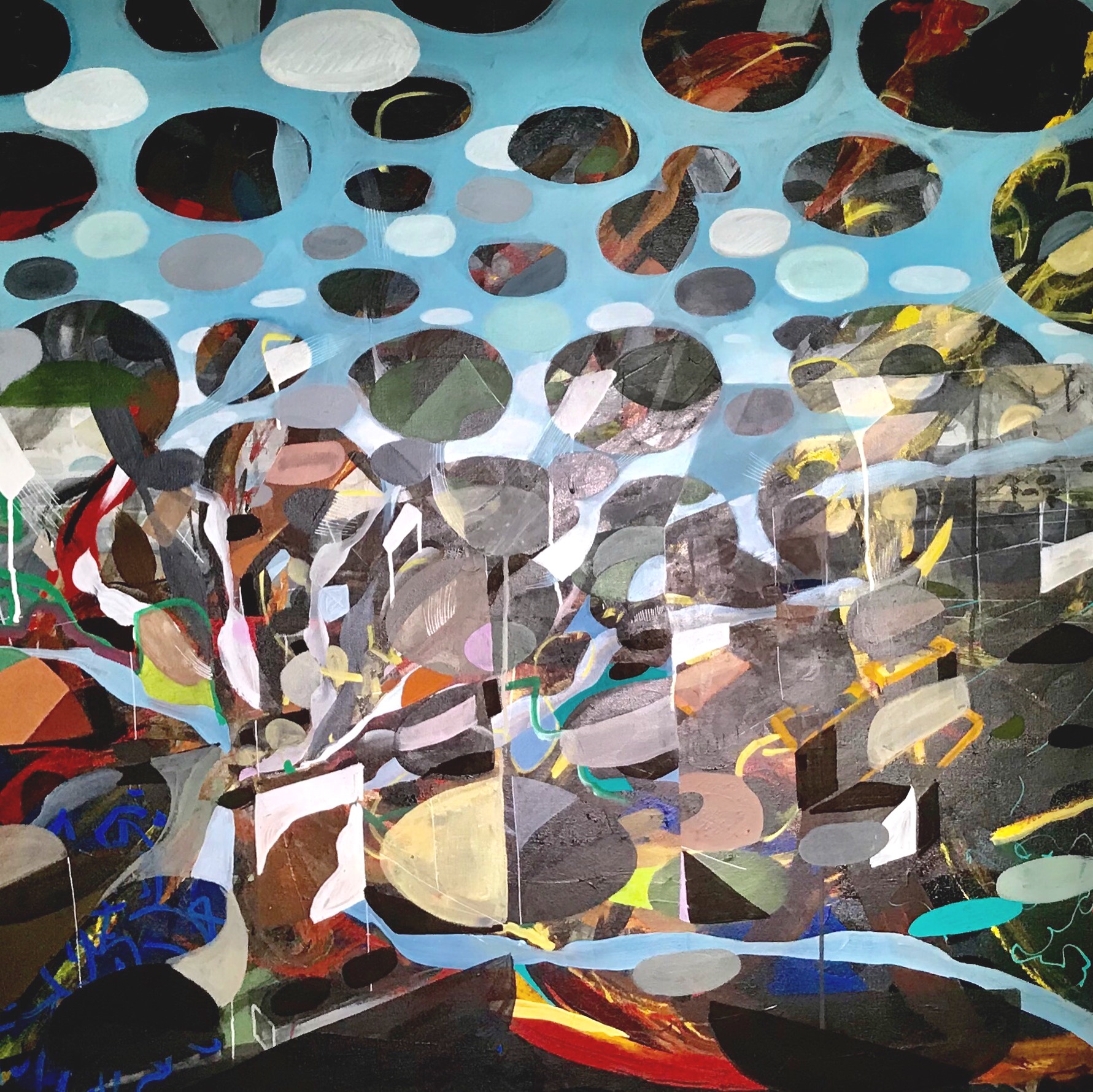 Han udtrykker sig primært med pensel og akrylmaling, som han krydrer med både spraymaling og paintmarkers. Inspirationen kommer mange steder fra, men overordnet kigger han indad.