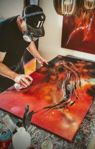 Min kreativitet fik mig til at bruge lærredet og mit kunstneriske udtryk forvandlet fra tegneseriestriber til farveeksplosioner, der bedst klassificeres som abstrakt ekspressionisme.