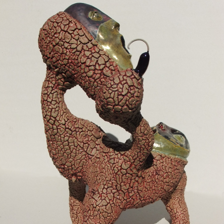 Eksperimenter med stentøj, porcelæn, oxider, reduktions brænding, glas og kobbertråd skaber spændende uventede resultater. Formerne kan være abstrakte og bløde geometriske, men også figurativ og genkendelige. Der er en form for menneskelig tilstedeværelse over dem.
