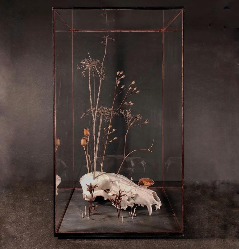 Alle værkerne hedder Redivivus. Redivivus er latin og betyder genliv, fornyet eller genfødsel. Det beskriver fuldstændig det, jeg arbejder med. Det er livets store kredsløb. Noget fødes, noget dør, og af det døde opstår nyt liv. Det er det, jeg prøver at vise i mine montrer; at efter død kommer liv igen. – Altså livets store kredsløb fortolket i små glasmontrer.