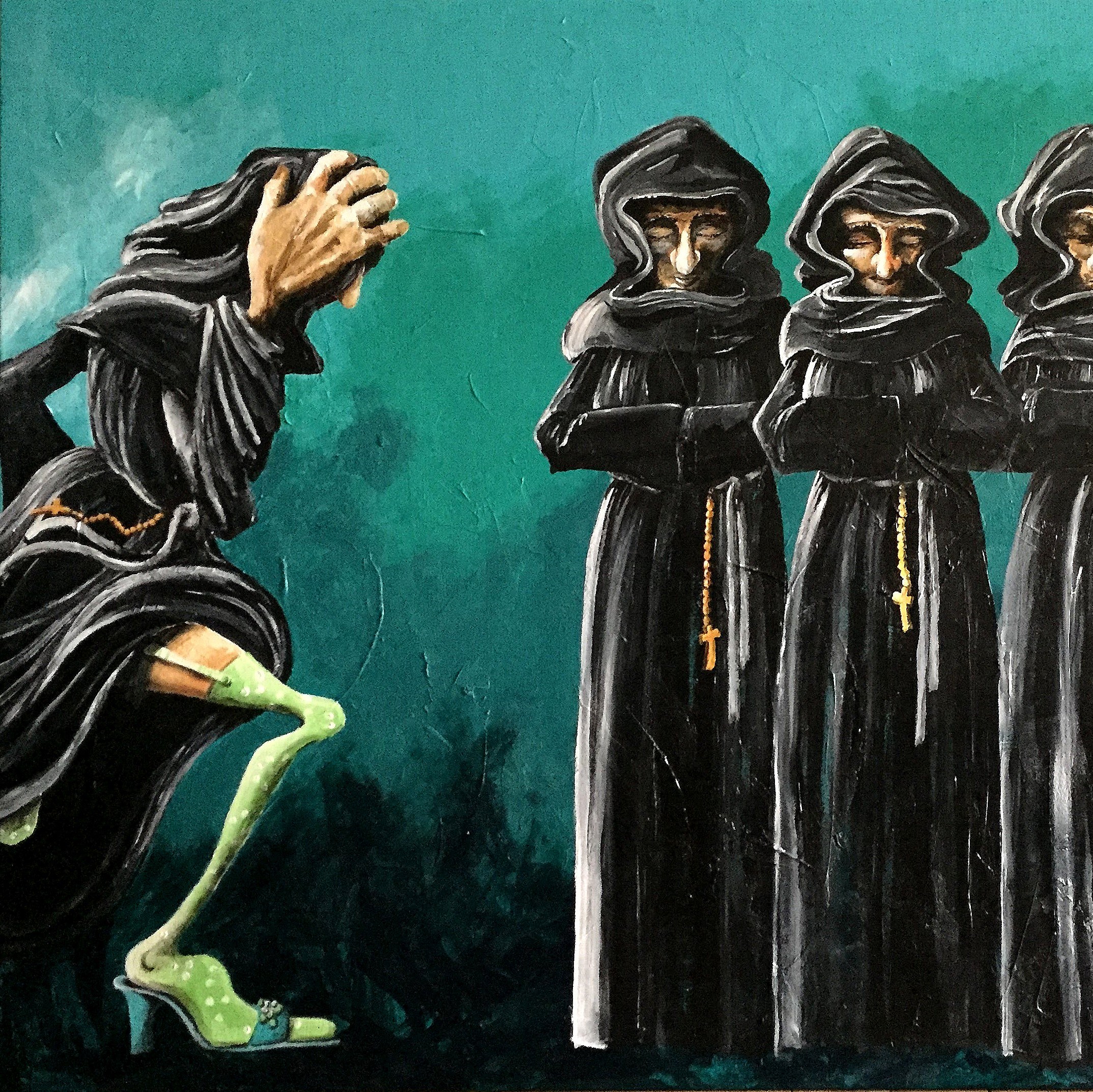 Farver, leg med ord, de landsdækkende nyheder, historier, sangtekster eller blot hørt på gaden. Alt kan bruges. Tingene bliver hurtigt til billeder i mit hoved. Skriver aldrig ting ned på papir, men bliver ’billederne’ ved med at spøge bliver de omsat til maleri. En ret finurlig proces, gerne tilsat lidt humor, skæv tankegang og ind imellem alvor. Malerierne fortæller næsten altid en historie.