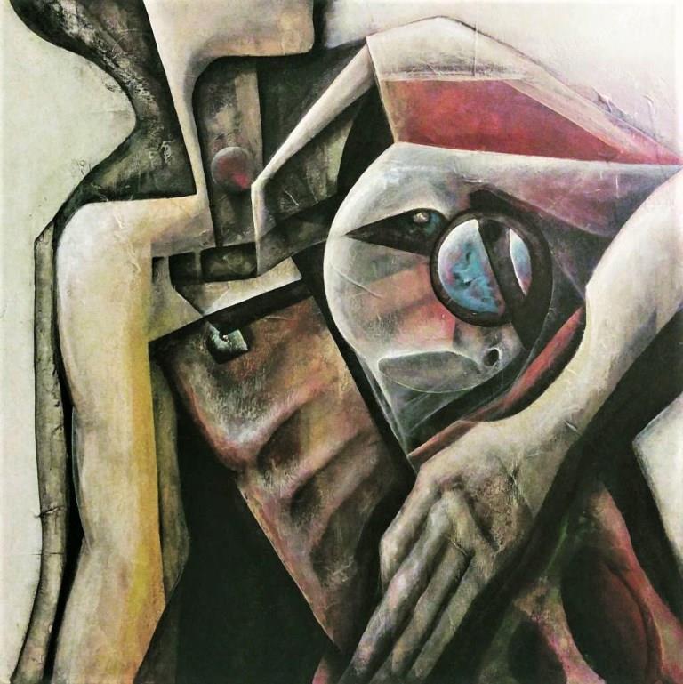 – Motiverne stiller ofte det menneskelige, bløde former overfor hårde, kantede, lineære strukturer. Det illustrerer de”kasser” vi som mennesker tilpasser os i samfundet. Derudover er motiverne ofte udtryk for de spændinger og modsætninger der er mellem mennesker, selv i de helt nære forhold. Det kan være i forholdet, som f.eks.mor/barn, hvor de bedste intentioner kan resultere i de største konflikter.