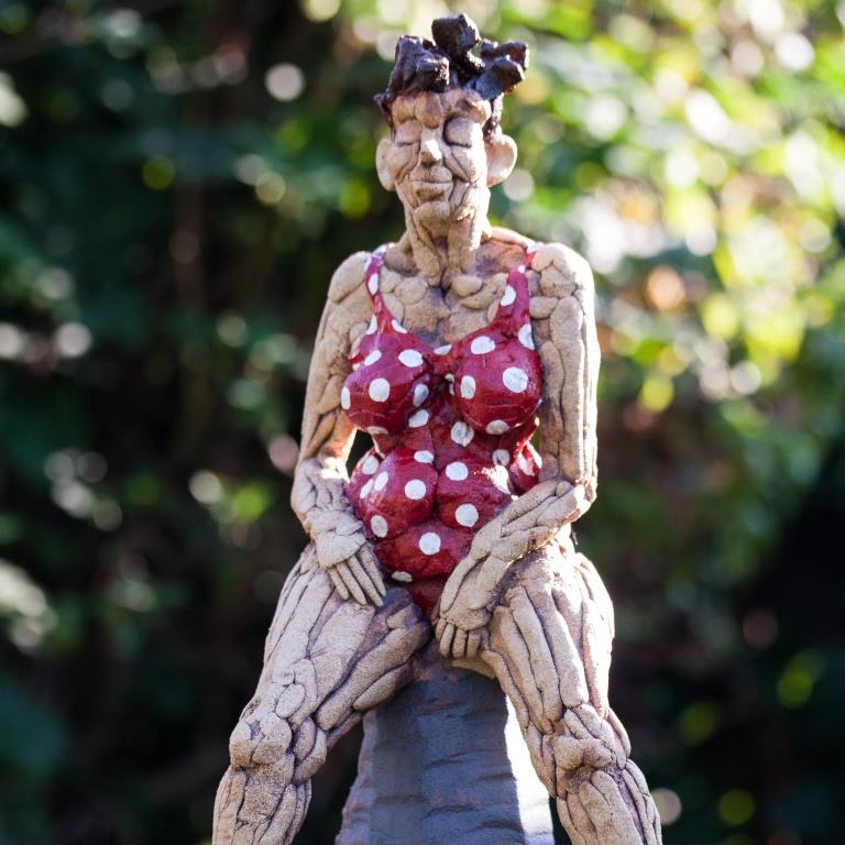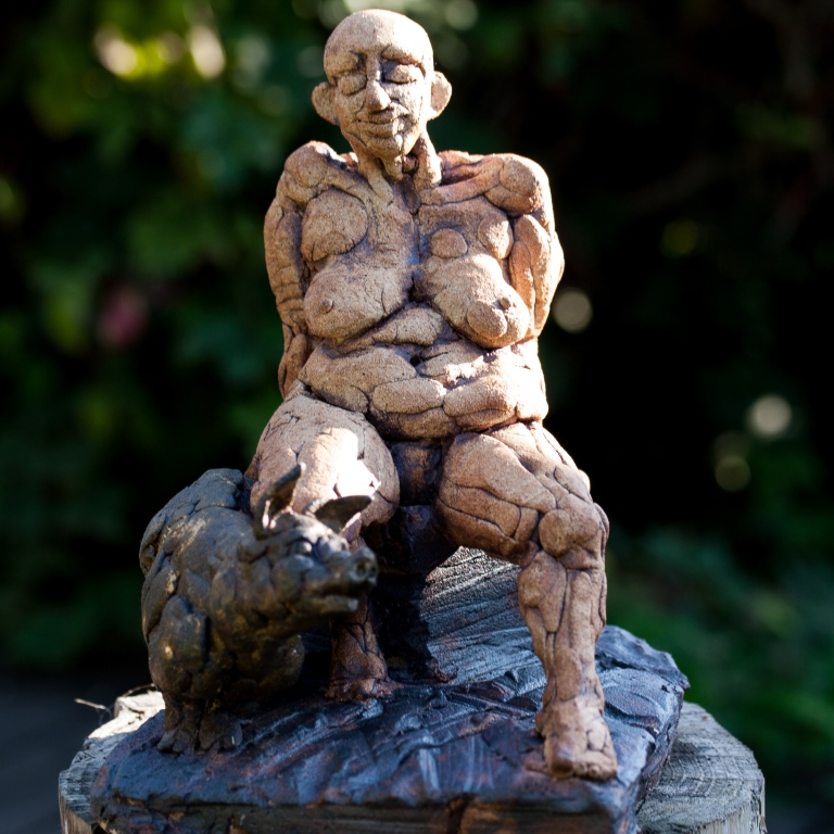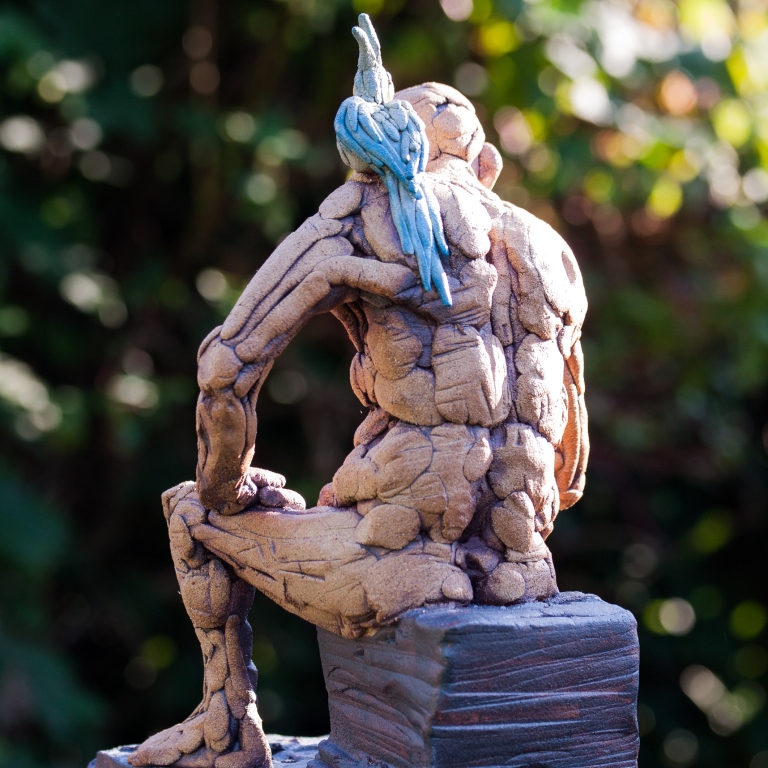 De fleste af mine skulpturer er modelleret i groft ler. Det giver figurerne en struktur som revnet, råt ler der lige er gravet op af jorden. Strukturen er fremhævet ved hjælp af oxyder, der lægger sig som mørke skygger i fordybningerne.