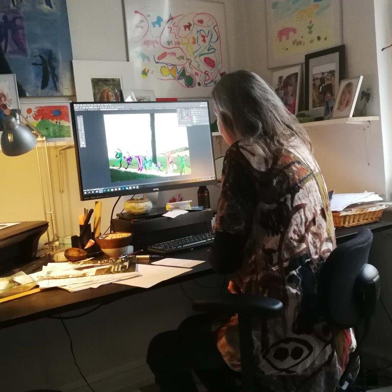 Da jeg altid har haft en drøm om at være billedkunstner og udtrykke mig af den vej, lavede jeg i 1990 min stue om til atelier og skabte mit eget lille ”akademi”. Jeg fulgte et utal af kurser, heriblandt på flere højskoler. Selvom jeg forsøgte mig med mange forskellige teknikker, lykkedes det ikke rigtig at finde frem til noget orignalt som jeg kunne være tilfreds med. Efter mange omveje er det nu endelig lykkedes for mig at finde mit helt eget billedsprog. Det er ligesom at have fået en stemme efter alle disse år. Næsten 27 år hvor jeg har ledt efter noget jeg ikke vidste hvad var. Det mærkelige er, at det faktisk har været der hele tiden. Jeg føler mig meget taknemmelig over endelig at have fået adgang.