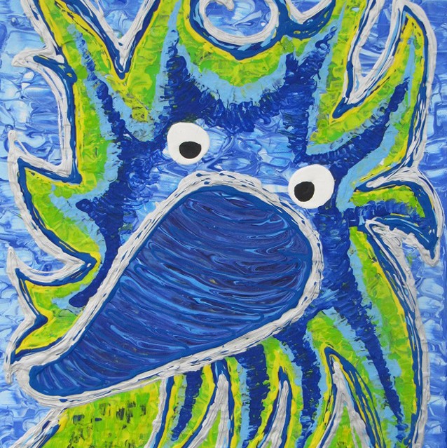-Mosaik er en af de ældste kunstarter. Det jeg elsker med mosaik er, at mosaiksten har mere dybde end maling. Afhængig af lysets refleksion i stenene, ændrer farverne sig. Flisestykkerne bliver på en måde animerede og bevæger sig afhængigt af lyset. Lige nu arbejder jeg med at skabe fabeldyr i mosaik med inspiration fra akrylmalerierne. Også tredimensionelt ved at modellere i fiberbeton. Jeg arbejder både med keramisk mosaik og venetiansk glas mosaik. I 2016 har jeg taget en master i mosaik over flere omgange i Venedig, fortæller Sara Legind Hansen.